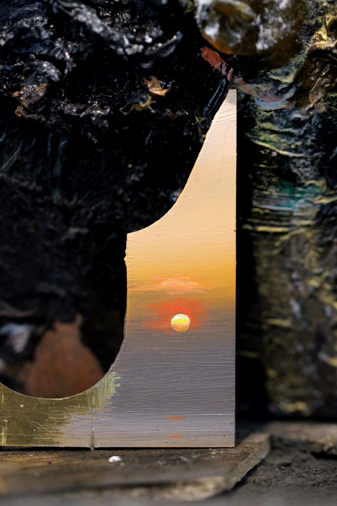 Miniature paintings using oil on roughened brass plates